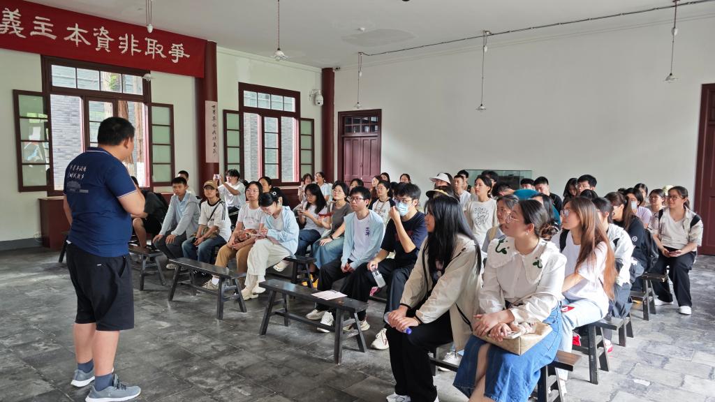 活动伊始,讲师带领同学们来到了武昌农民运动讲习所旧址纪念馆。第一次国共合作时期,经毛泽东同志倡议与组织,这里创办为培养全国农民运动干部的学校。在毛泽东同志办公过的常委办公室,讲师为大家讲述了当年革命先辈们在此为农民运动出谋划策、辛勤工作的场景。许多共产党人、国民党左派人士如邓演达、陈克文均曾在此执教,为培育农民革命火种贡献力量。学校学员们毕业后奔赴全国各地,领导开展农民运动,将革命的星星之火燃遍全国。