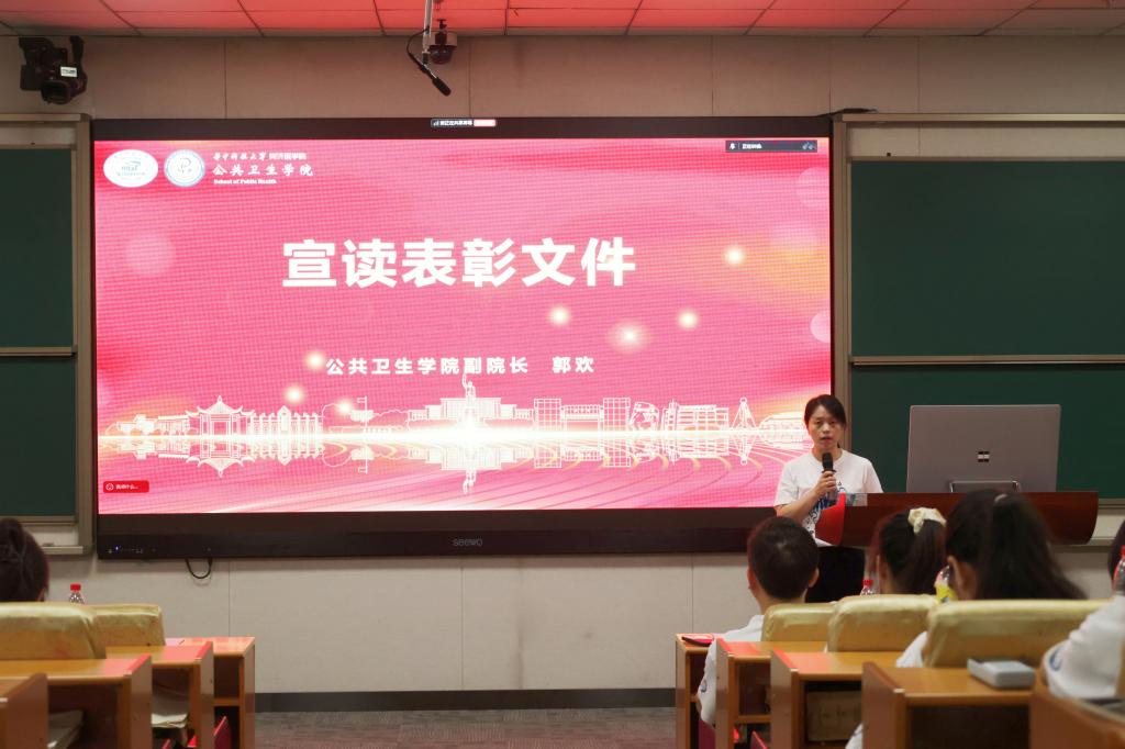 公共卫生学院副院长郭欢宣读了2025届优秀毕业生、优秀毕业研究生及到西部艰苦地区、基层和国家重点单位就业表彰名单,并希冀他们在今后的学习工作中再创佳绩,鼓励同学们以他们为榜样,争做有理想、敢担当、能吃苦、肯奋斗的新时代好青年。