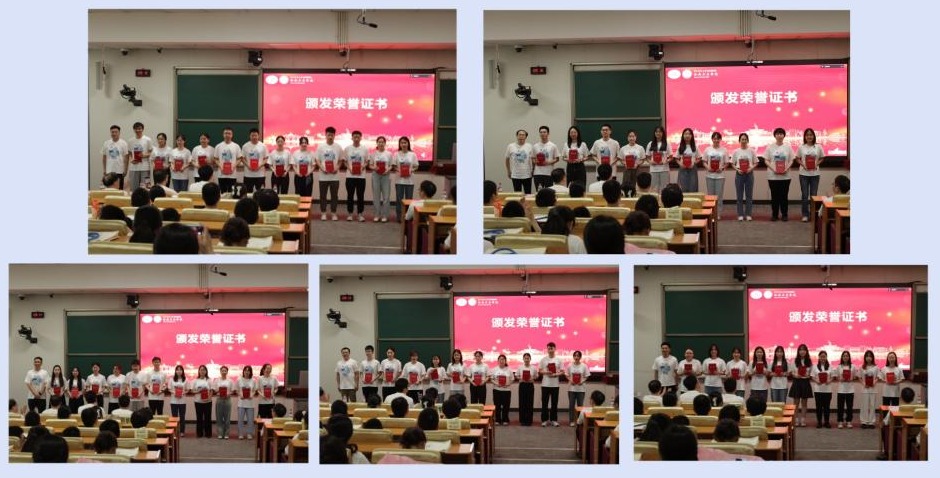 学院党委书记邱勇、院长助理殷晓旭、方为民,20级本科生教师班主任杨良乐、王豪、甘勇分别为获奖毕业生颁发证书。