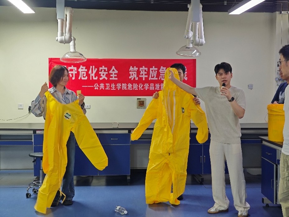 2025年10月9日下午,公共卫生学院在公卫2号楼环境与健康研究平台215室组织开展了一场危险化学品泄漏应急演练活动,本次活动作为校实设处“2025年实验室安全文化月”系列活动的一环,吸引了近百名师生参与,包括2025级研究生新生及涉及危化品操作的实验人员,现场模拟真实泄漏场景,旨在增强学生的安全防范意识,提升师生在危化品泄漏事故中的应急处置与协同配合能力。