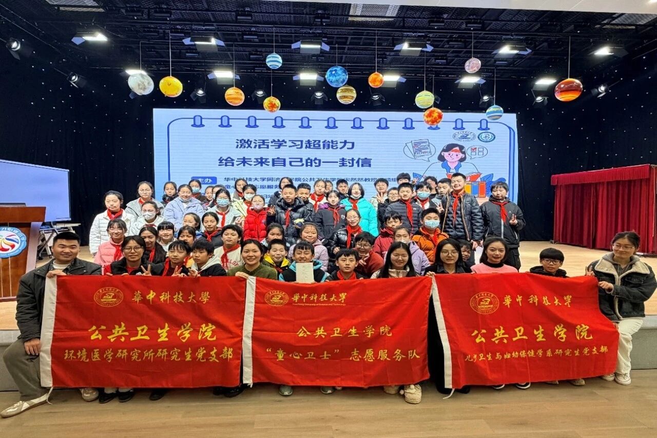 2026年1月16日,华中科技大学同济医学院公共卫生学院“童心卫士”志愿服务队,携手儿少卫生与妇幼保健学系研究生党支部,为武汉市育才怡康小学六年级学生开展“激活学习超能力——给未来自己的一封信”主题宣讲。