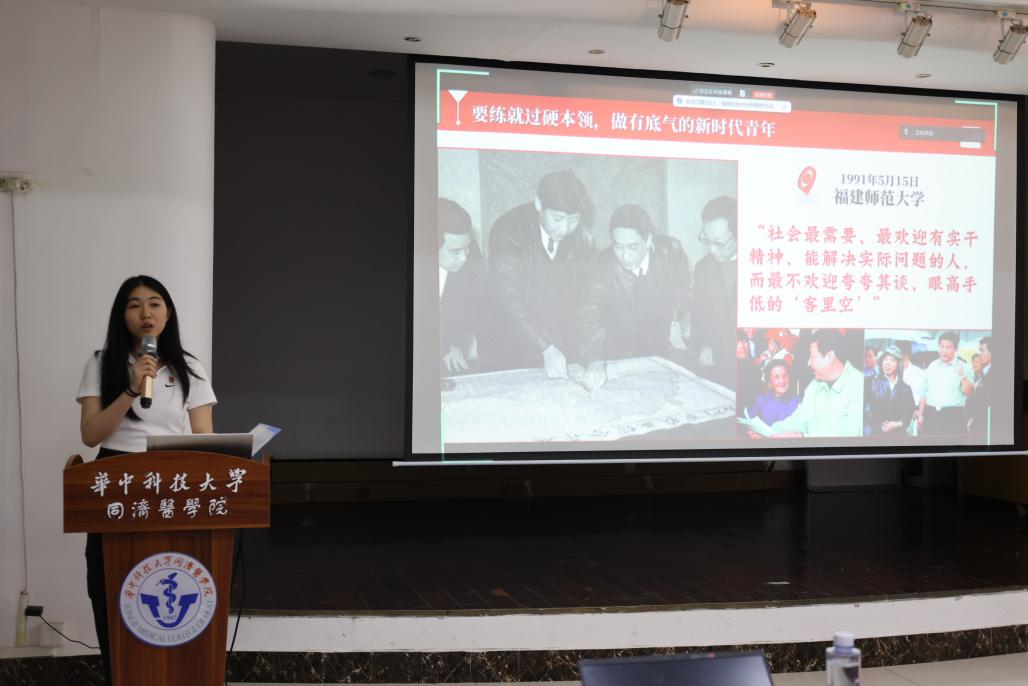活动伊始,本科生第二党支部中共党员钟昕仪同志带领全体与会同学共同学习《习近平与大学生朋友们》中的经典片段。她结合自身学习实践经历,分享了习近平总书记对青年学生“志存高远、脚踏实地”的殷切期望,号召大家在专业学习和社会服务中锤炼本领、担当作为。